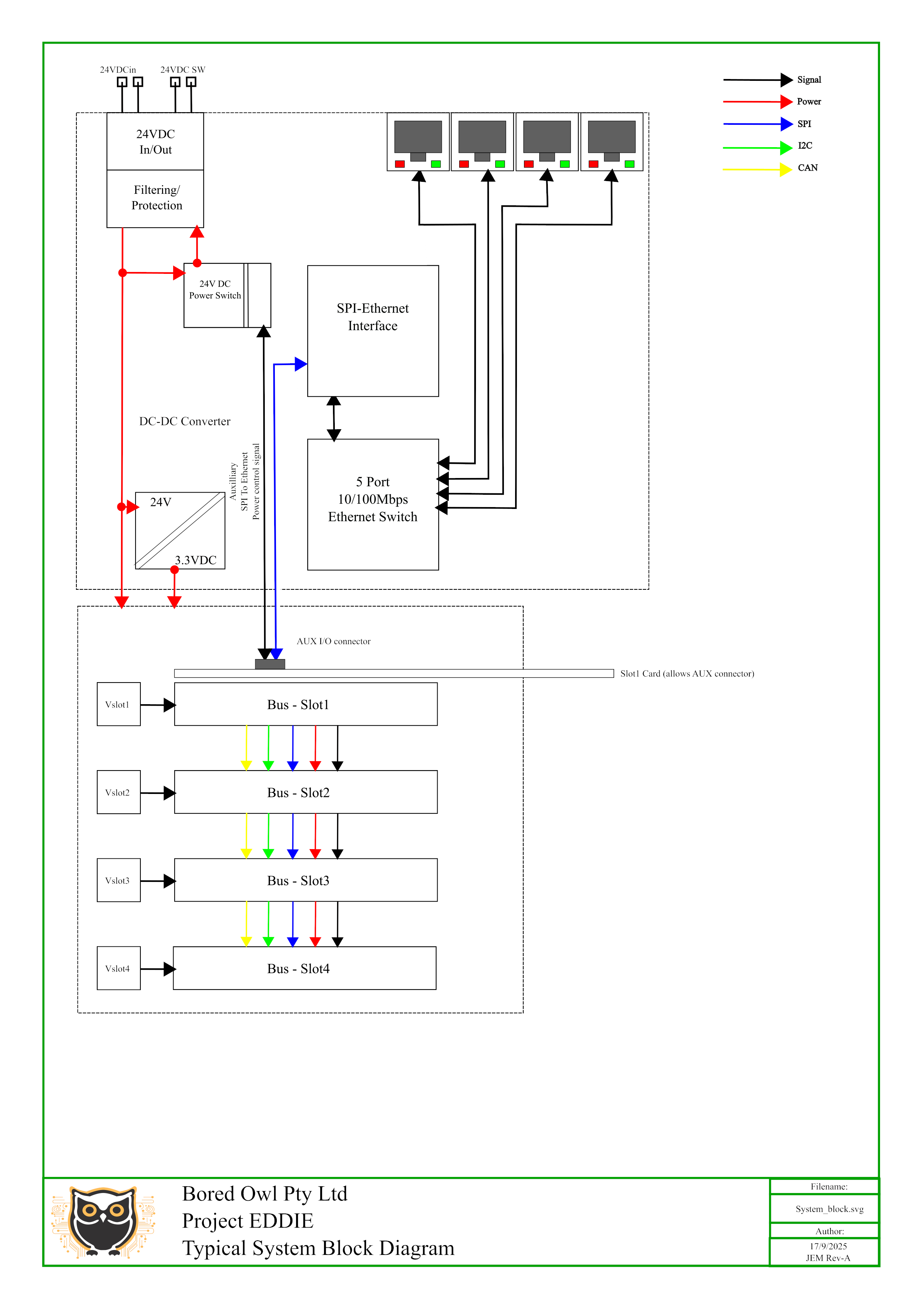 The power/Ethernet card is providing 3.3V and the 24V power switch functions as required. The SPI Ethernet interface is yet to be tested.